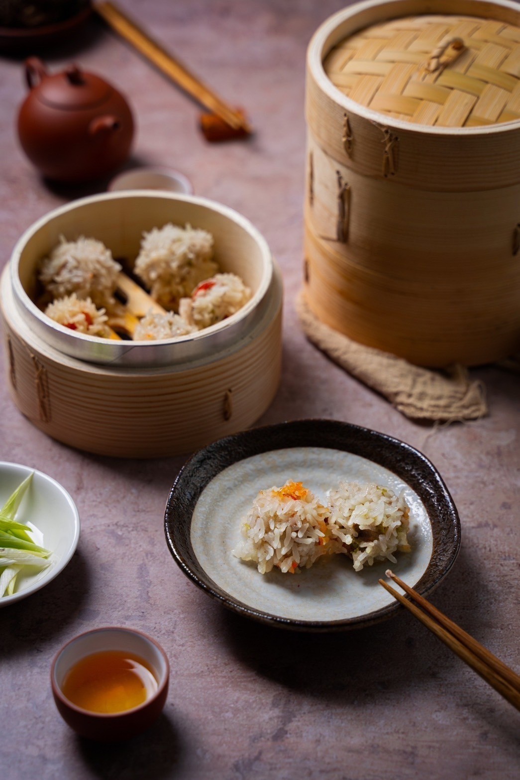 將滿滿的新鮮芹菜拌入燒賣餡,再均勻地裹上糯米,紮實Q彈的內餡,搭配著軟而不爛的糯米,味道及口感均有豐富層次!
